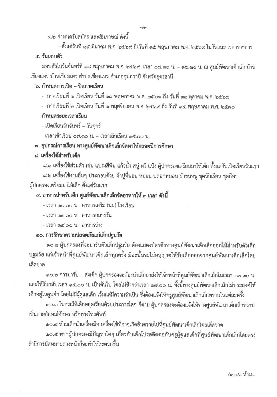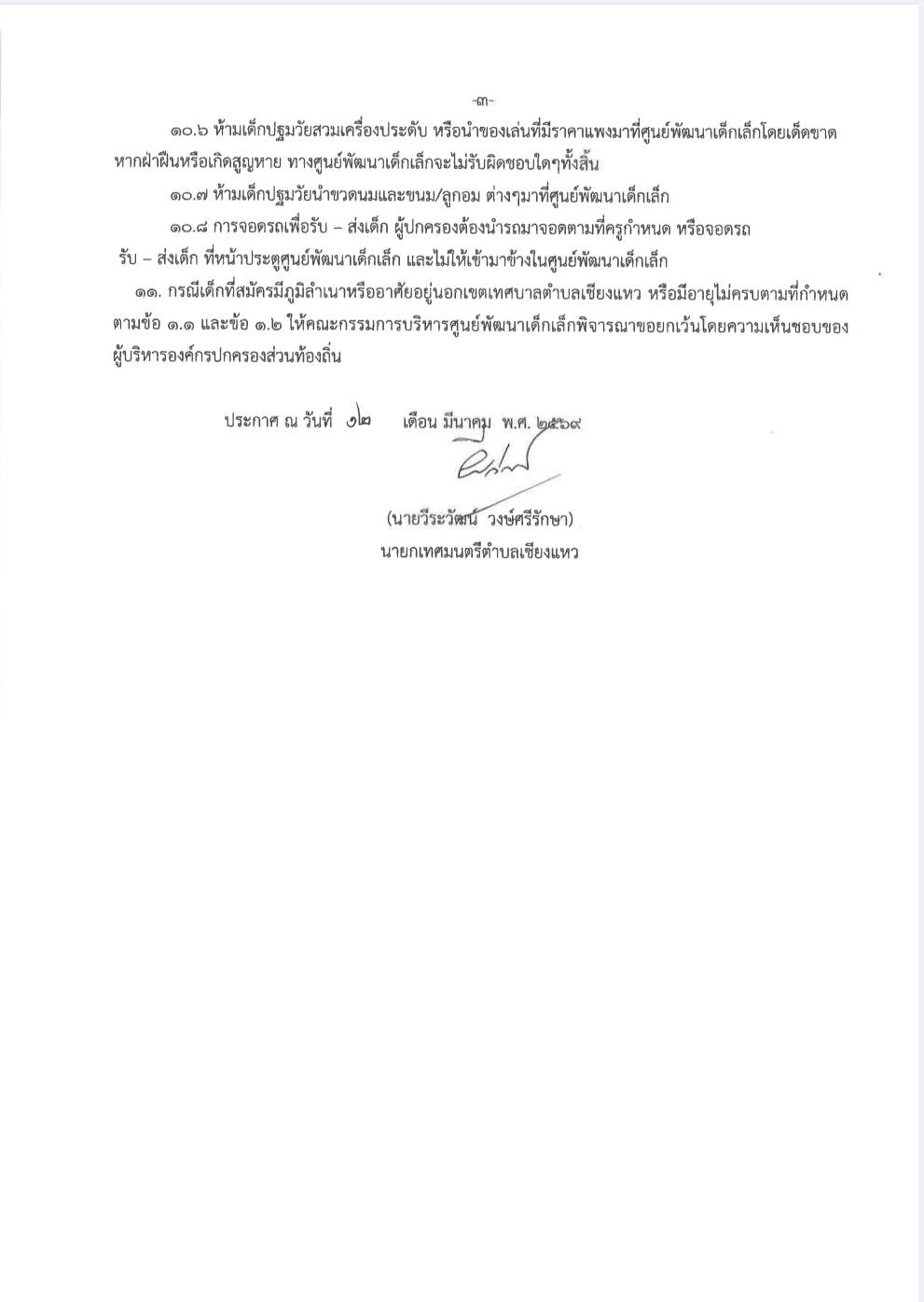 ประชาสัมพันธ์ ศูนย์พัฒนาเด็กเล็กสังกัดเทศบาลตำบลเชียงแหว เปิดรับสมัครเด็กใหม่ ระดับก่อนปฐมวัย ประจำปีการศึกษา 2569